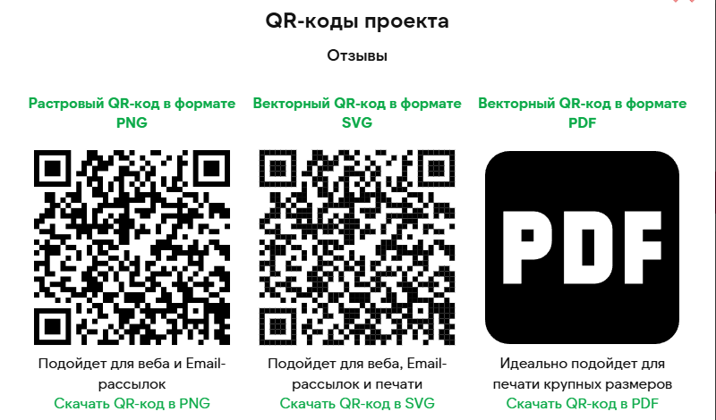 Кстати, в описанном нами выше инструменте также можно получить ссылку на страницу или скачать сгенерированный QR-код в любом удобном формате.