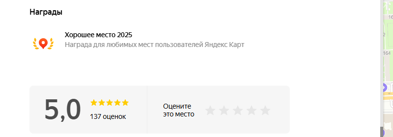 - рейтинг на Яндекс Картах 4,5 и выше;