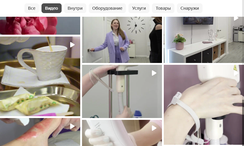 Многие современные студии красоты ведут социальные сети, в которые выкладывают видеоконтент. В таком случае некоторые из видео можно смело добавлять в соответствующий раздел на Яндекс Бизнес. Чтобы привлечь клиентов, можно загрузить контент на следующие темы: